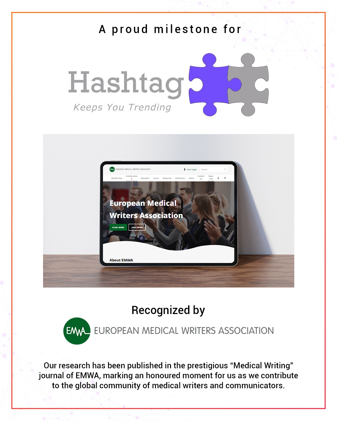 Hashtag Medical Writing Solutions Pvt. Ltd. stands as a beacon of excellence in the realm of medical communication and scientific writing. Established in January 2018, our journey from humble beginnings with just two dedicated individuals to celebrating our sixth year reflects our steadfast commitment to quality and innovation. Over the years, we have grown into a dynamic team of skilled and adept professionals, dedicated to bridging the worlds of industry, medicine, and research.