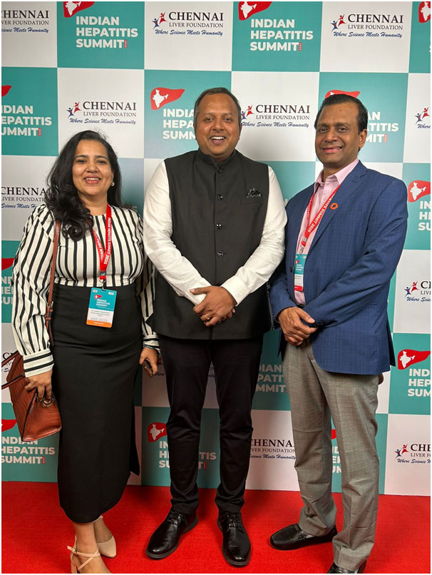Launch of Indian Hepatitis Summit, 2025. (from left to right) Dr Sujatha Vijayakumar, Dr P Ganeshkumar, Dr S Vivekanandan